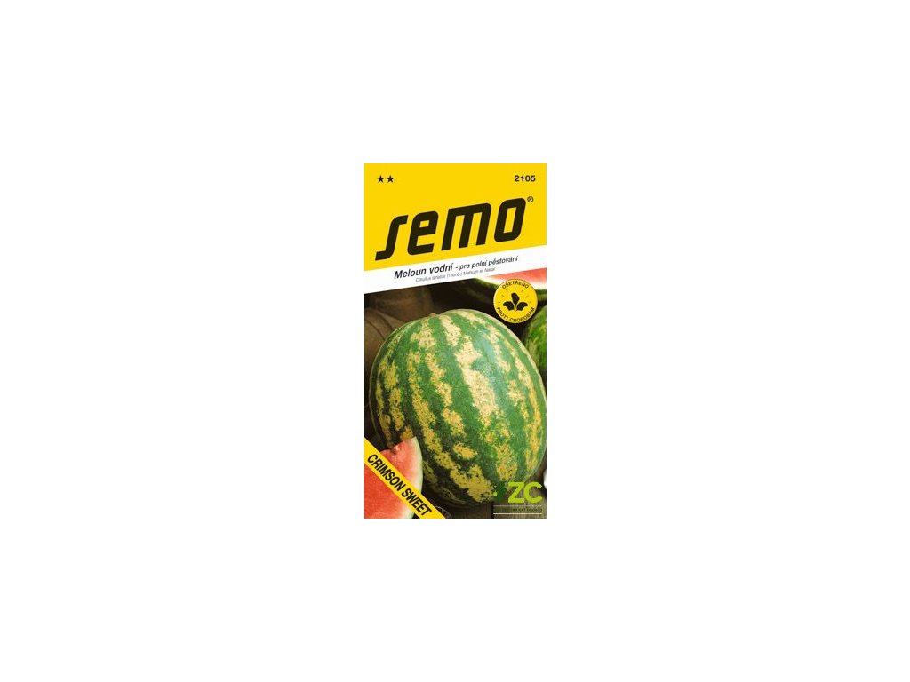 Crimson Sweet – oblíbená raná odrůda s oválně‑kulatými plody o hmotnosti až kolem 7 – 10 kg. Slupka je světle zelená s tmavšími pruhy a dužnina výrazně červená a sladká.