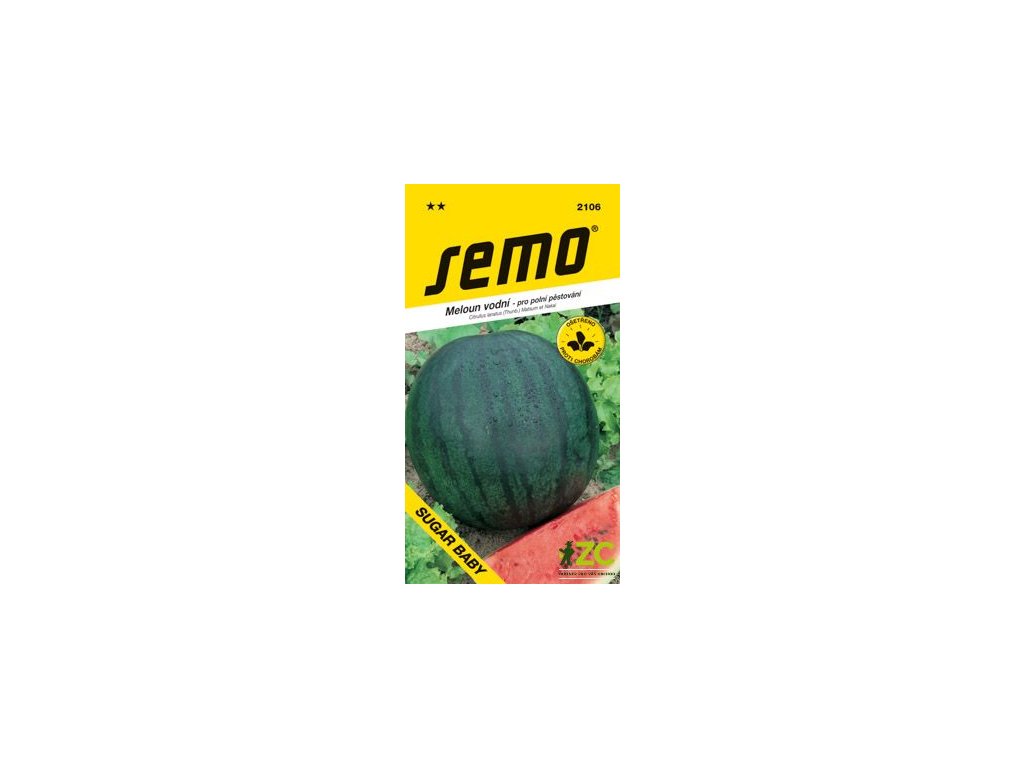 Sugar Baby – velmi raný vodní meloun s kulatými plody o váze kolem 3 – 5 kg. Má tmavě zelenou pokožku a sytě červenou, jemnou a sladkou dužninu.